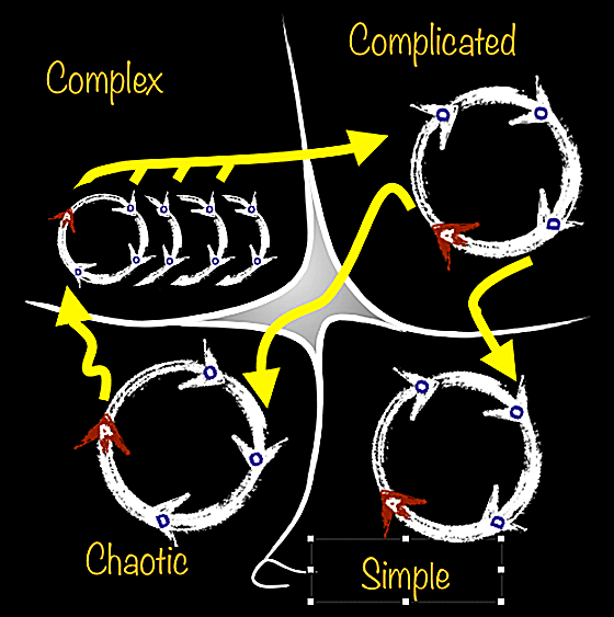 So you see that for example going from “chaotic” to “complicated” requires you to pass through “complex” via a wobbly path, and turn on your head three times. Can you go from “simple” to “chaotic”? Nah, impossible.