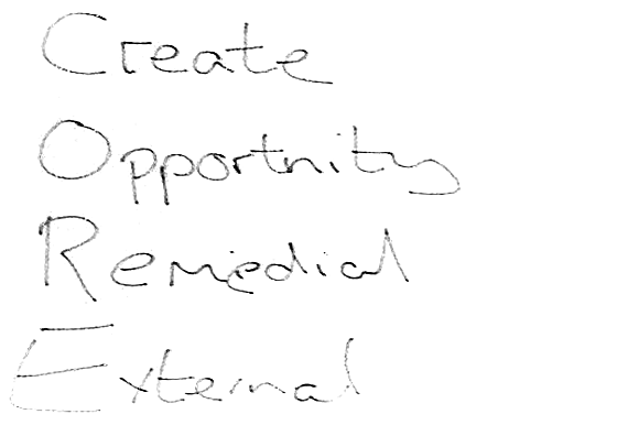 The third way to know what you know is to Create Opportnity (with the spelling mistake) Remedial External.